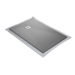 Receveur de douche aspect ardoise, grille carrée inox de même couleur, avec natte d'étanchéité pré-montée, livré avec une bonde 360° ou siphon ultra plat au choix